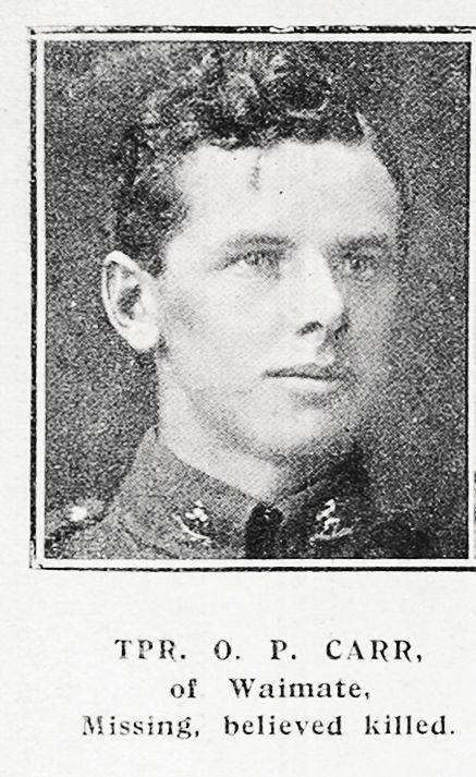 Photographed during a visit in October 2003 (Courtesy of G Purcell ) From an album belonging to Major David Grant, commander of the South Canterbury infantry contingent. Grant was killed in action on 25 April 1915, the first day of the landings at Gallipoli. ( ) (South Canterbury Museum ) Having served since 1916 and surviving a brush with influenza in late 1918, Albert shared this postcard with his sister Louinda (Lou) Bisman. Albert was on leave in Cornwall in early 1919, visiting his uncle John (his mother's brother) only a few months prior to his final discharge. (Courtesy of K Bisman ) (Supplement, Auckland Weekly News, 28 October 1915, p41 ) (Courtesy of V Slow ) (Auckland Weekly News, 1918 ) Commemorative medals like this were often awarded to returning soldiers by their local communities. In this case Boyd's "Tycho Friends" inscribed and awarded this commemorative on 21 November 1919 (Courtesy of J Atkins ) The portrait that appeared in the Otago Witness following reports of John Porter's death. (Otago Witness, 2 January 1918. Courtesy of Papers Past, National Library of New Zealand) (Courtesy of the Otago Witness, 6 October 1915, p47 (Supplement) ) (Courtesy of B & J May ) (Courtesy of D O'Neill ) (South Canterbury Museum 2013/155.01 #01) (Courtesy of S Horsman ) After discharge and return to New Zealand, Hugh received outpatients treatment for his gunshot wound to his right tibia at Timaru. (Courtesy of G Pullar ) Mounted on a brick pillar at the School's front gate (South Canterbury Museum ) (Courtesy of F Johnston & J Marshall ) (Auckland Weekly News 1918 ) Frank worked for the Mt Cook Motor Company and is thought to be pictured in this image. (Courtesy of C Smith ) From the Roll of Honour for the Court Star of Waihao (No. 7929). Ancient Order of Foresters - Members who took part in the Great War 1914-1919. (Waimate Museum & Archives 2002-1026-03074) (Courtesy of Albury Mob Facebook page ) The couple were married at Avrilton, Kingsdown, on 25 November 1924 (Courtesy of D Hall ) (Courtesy of L Griffiths ) (Courtesy of J M Willetts, South Canterbury Museum L2015/006.04) (Courtesy of S Crystella ) (Courtesy of J Bray ) (Auckland Weekly News 1918 ) Isabel (Isa), George, Thomas, Margaret (Meg), Marion, and George (Courtesy of J Ware ) (Courtesy of J Willetts ) (Supplement, Auckland Weekly News, 18 July 1918, p41 ) (Nelson College (From "The Nelsonian")) (Archives New Zealand, R24184346 ) Five members of the 8th (SC) Mounted Rifles, pictured in a studio portrait. Pictured are: